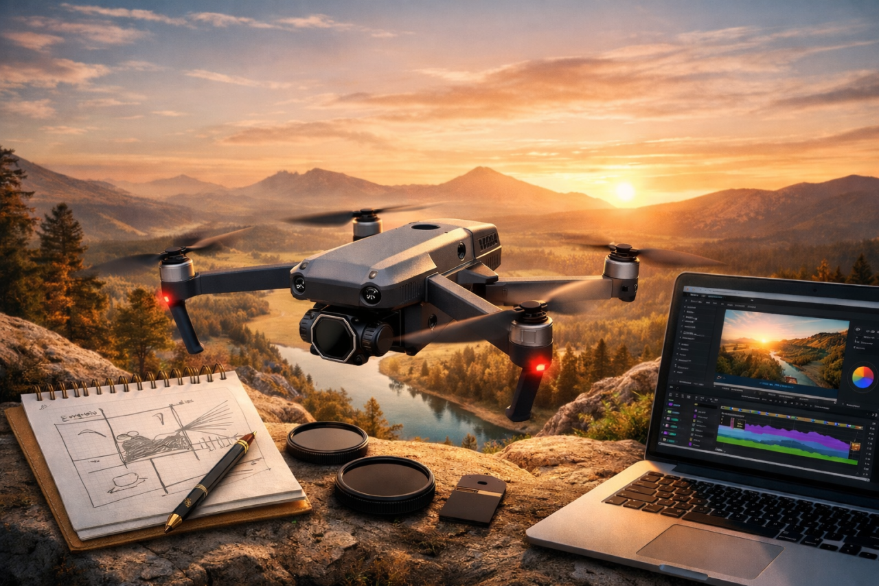Great footage starts on the ground. Scout locations, anticipate lighting, and visualize your flight path. Early morning and late afternoon light creates natural depth and cinematic textures. Storyboarding key shots saves time and helps you fly with purpose.